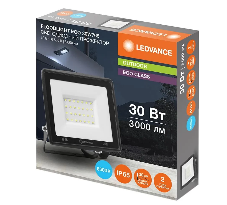 FL ECO 30W/765 230V BK 20X1 T RU LEDV - прожектор retail